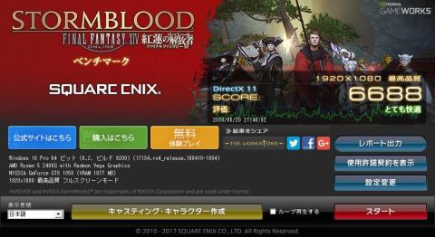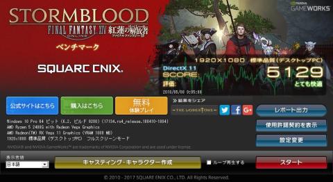 そしてスコアが5129だったFF14のフルスクリーン1920*1080、標準画質との比較では倍以上の11897という結果に。