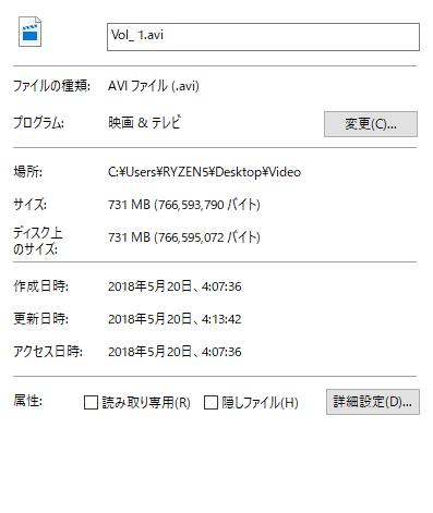 これをMP4→AVIに、そしてAVI→MP4にエンコードする時間の測定をしました。