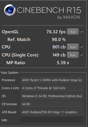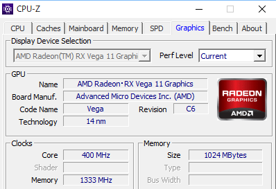 APUとして,Ryzen™ 5 2400GのCPU/GPU情報を見ておきます.