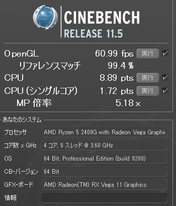 CPU性能は,CINEBENCH R11.5 / R15で比較します.CPUは,すべて定格動作です.