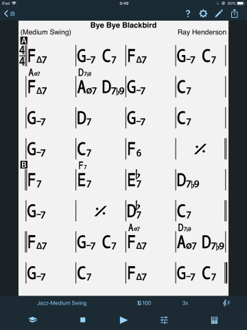 今、想定しているのは、外出先の隙間時間に、アプリiRealProでコード伴奏を鳴らし、頻繁・ランダムな転調に対応するトレーニング。ゲーム的に楽しむ感じ。