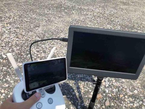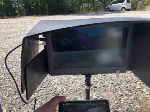 ほぼ全く見ることができません(汗)流石に300cd/m2の明るさでは直射日光の素では全く見え無い状態で、逆に専用のドローン送信機モニターではしっかり見えています。写真では少し差がわかりにくいかもですが、ドローン送信機側は肉眼で見るとはっきり見えるレベルで、特に撮影に支障をきたすことがない状態でした。(写真のOn-Lapは照度は最高状態で、映像は表示されています)
