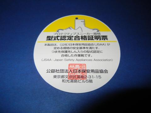 その型式認定合格標章等は以下のマークで、製品タグと靴の内側に表示されています。