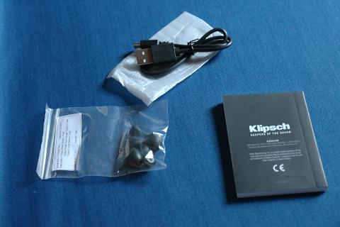 主な添付品です。取扱説明書、充電用microUSBケーブル、各種イヤーピースとなります。