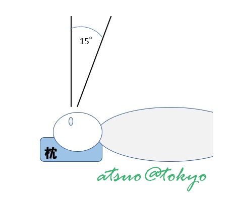 適している高さの枕は、目線が垂直方向に 0度から下方に 15度以内に収まっていると良いそうです。