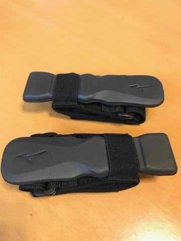 そして、そのプレートを伸縮性のあるゴムバンドのわっかで、足に装着します。