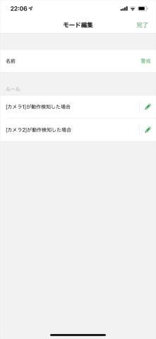 設定した「ホームモード」は、スケジュールで設定し、毎日21:00~翌朝の6:00までを監視。監視カメラの感度も、デフォルトの80では少し強いので、50と設定しました。