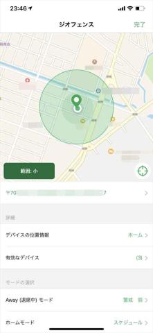 「ホームモード」(家にいる時)での動作を設定し、このエリアから出た時「退席中モード」の設定を行います。