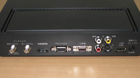 モニター出力については””HDMI、D端子(D1/D2/D3/D4)、アナログRGB、S端子(S1/S2)、コンポジット”と現行の規格は全て対応可能。アンテナ入力端子については地上デジタルとBSデジタル個別に入力する方式です。その他に録画用の外部HDDを搭載するためのUSB端子が用意されています。