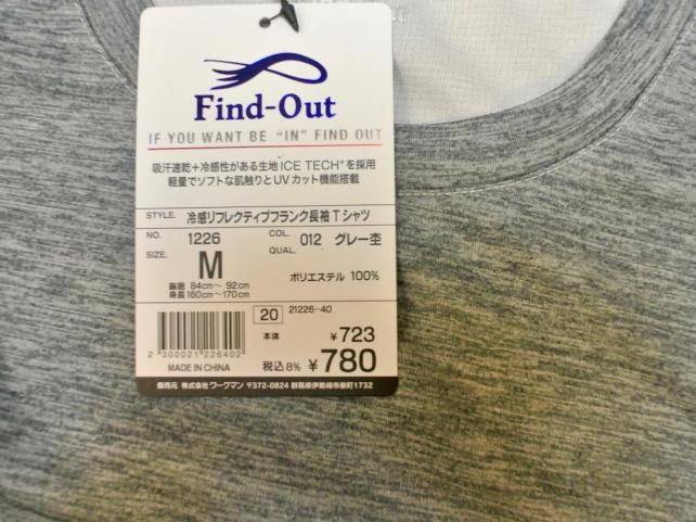 冷感リフレクティブ フランク長袖Tシャツ(商品番号:1226) Mサイズ(780円)
