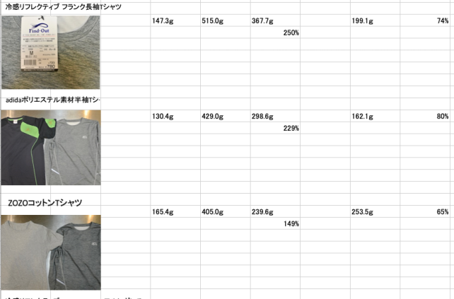 脱水後の速乾性はadidas製品に劣るように見えますが 半袖と長袖の差を考えると同等以上でしょう