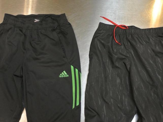 左は比較に使ったadidas製品 共にポリエステル100%ですが そもそもの重量が違います