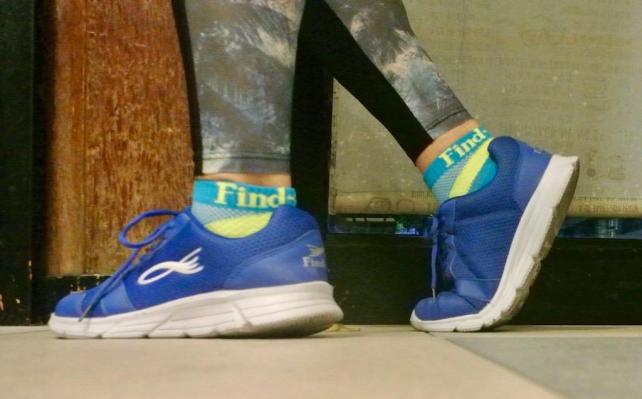 サイドとヒールに 新しいファインド・アウトのトレードマークが輝きます 夜間視認性にも寄与