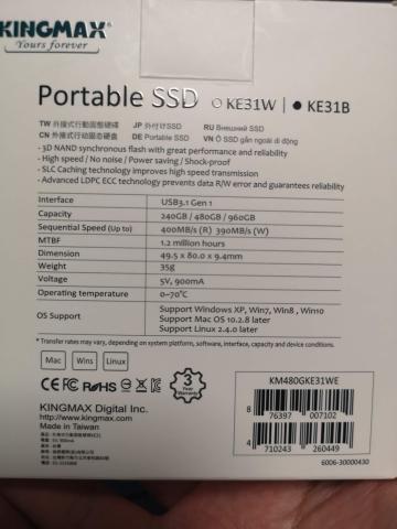 Kingmax社のポータブルSSD KM480GKE31WE(以下KE30W略す)は、