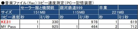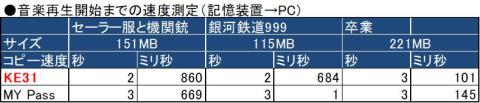 結果は言うまでもなくKE31Wが高速であったが、念のために比較すると下記のとおり。