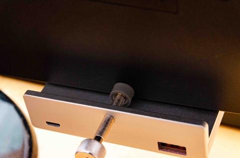 ねじの固定部分には円柱状のゴムがあり、固定する機器等に傷がつかないようにしています。