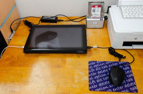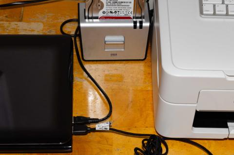 ↑の画像のように、USBのクレイドル式の外付けHDDを写真データ等のバックアップで使用しています。置き場所の関係から右側のUSB端子に接続しています。左側にはUSB2.0×1とUSB3.0×1があるのですが、USB3.0ポートが一つしかないため、なるべく右側は空けて置きたいのです。(このクレードル式のものはUSB2.0までの対応のため、3.0につなぐ必要はなし。)