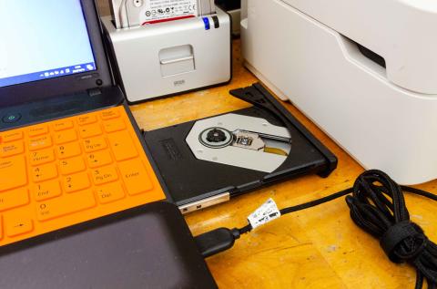 しかし、現在の接続方法でBlu-rayドライブを使用する場合、開閉する際にドライブのトレイがケーブルに干渉してしまいます。ケーブルを手で押さえてトレイにぶつからないように避けながら開閉する必要があります。そこで、「ORICO USB3.0 ハブ 4ポート クリップ式」を使うことでこの問題を解消していきます。