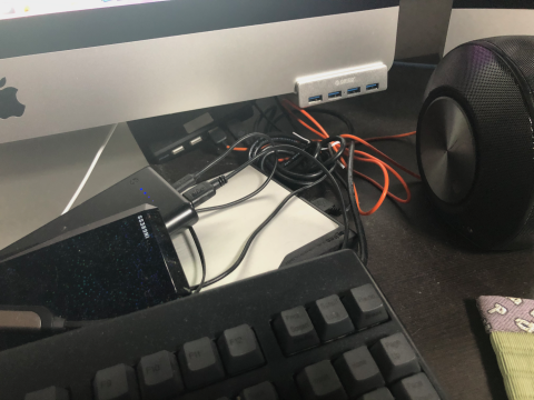 iMacにはUSB3.0が3つついてるんですが、LightningとBDドライブとUSB2.0ハブ、そして充電用のMicroUSB Type-Bが一つ。