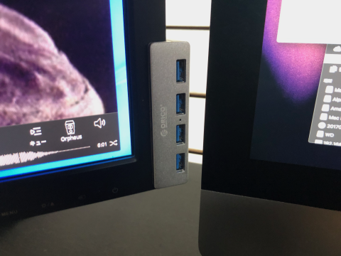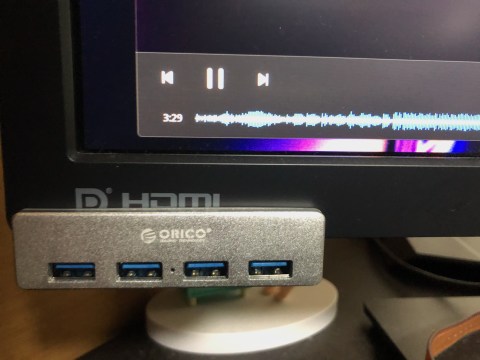 前にベルクロをつかって固定できるUSBハブがあったんですが、それはなんだか調子が悪いので2軍落ちです。