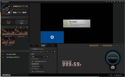 AVerMedia RECentral の配信プリセットより、解像度、FPS、ビットレートの指定がことなる