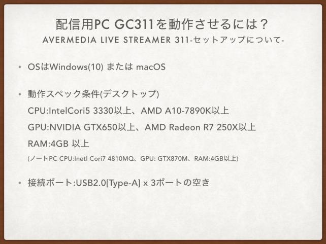ギリギリということなので、GC311を動作させる推奨条件をまずは確認