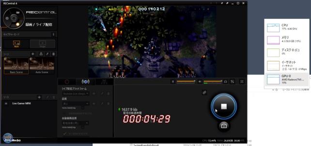 ちなみにプリセットの最高設定で配信と同時に同じ設定で録画した場合の負荷状況は