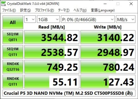 Crucial P5 3D NAND NVMe(TM) M.2 SSD CT500P5SSD8 は 7.965 sec