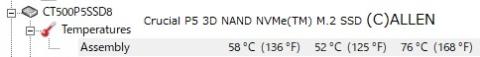 温度の比較 アイドル51~58度前後 最大76度(他社のM.2やSATA3のSSDと体感比較)