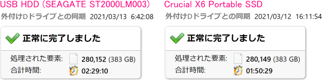 ①USB HDDとCrucial X6 Portable SSDでバックアップ比較