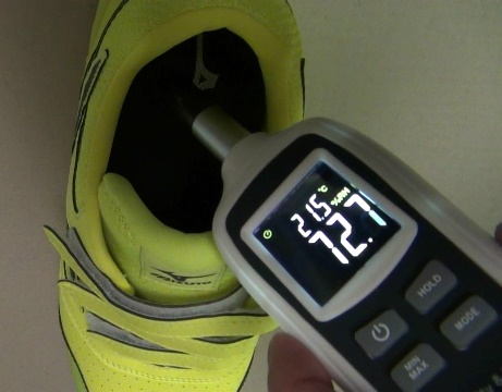 ③靴を脱いだ直後の靴内部の温湿度を測定