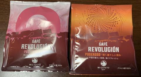 カフェ レボルシオンは、ミカフェート社が手掛ける入門編のドリップコーヒーになります。(あえて、緑にしてみました)