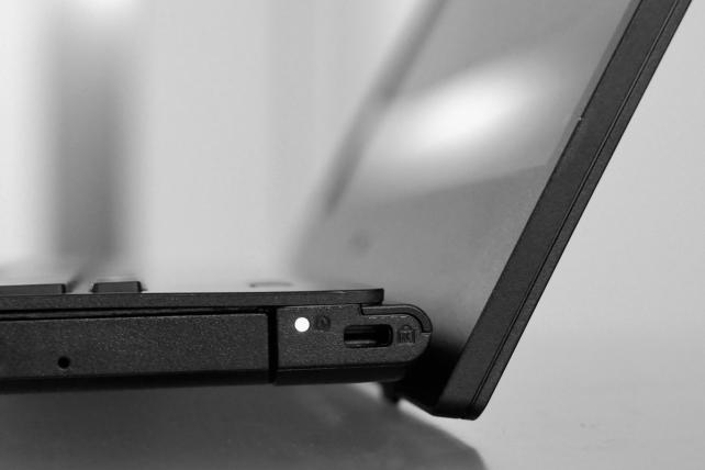 ケンジントンロック用孔の横には、ホワイトLEDでパワーインジケータが付いています。