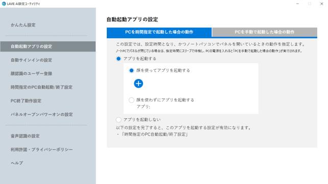 このほかに、LAVIE AI設定ユーティリティで、サインインや顔認識の登録等ができます。