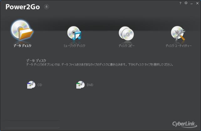 Power2Goでは、CD/DVDドライブのライティングツールで、データDVDの作成やディスクのコピー等を行うことができます。