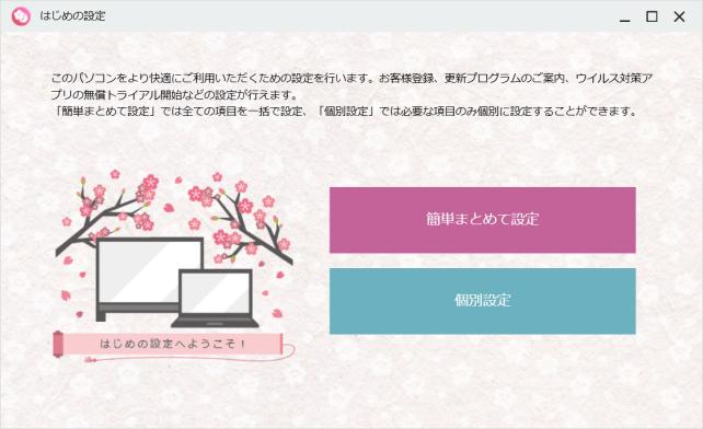 PCへのWindows10のセットアップ直後には、自動的にはじめの設定というアプリが起動します。PCのセットアップを行うことができます。