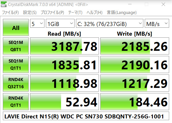 私は、WD SN750のOEMモデルではないかとも思いましたが、WD SN750の250GBモデルよりシーケンシャルライトが速いので、OEM専用モデルではないかと思います。