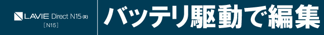 一般的なノートPCでは、バッテリでの駆動時には、利用時間を延ばすために、ノートPCのパフォーマンスを抑える電源プロファイルを採用する商品も多い中、『NEC』LAVIE Direct N15(R)では、そんなパフォーマンスダウンを感じることなく快適に編集を行うことができました。