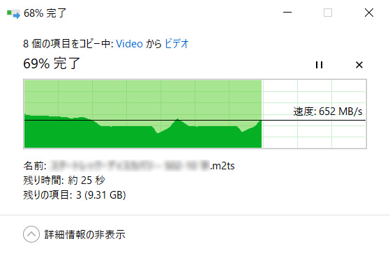 このポータブルSSDは、動画ファイル等を『NEC』LAVIE Direct N15(R)のSSDにコピーすると、600MB/s以上の速度で転送できますので、SATA接続のSSDよりは高速です。