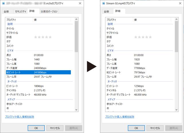 オリジナル オーディオファイル及び変換後の詳細は下記の通りです。