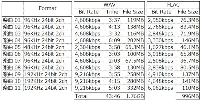 用意したオーディオファイルは、96KHz 24bitから、192KHz 24bitオーディオデータ11曲で、約1.76GBのファイルを、flac(free lossless audio codec)に変換するものです。