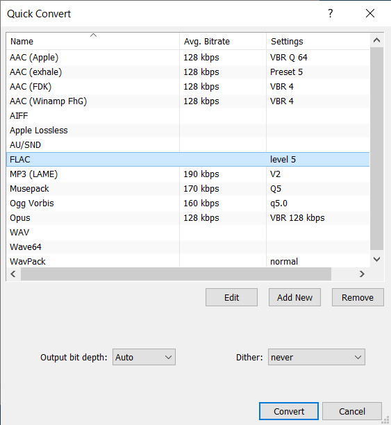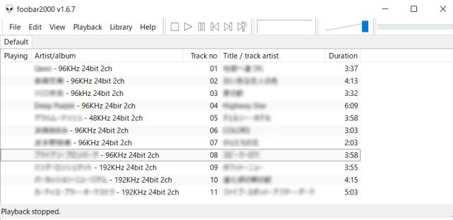 変換は、ハイレゾオーディオプレーヤーのfoobar2000を使い、flac level5(標準)で変換しました。