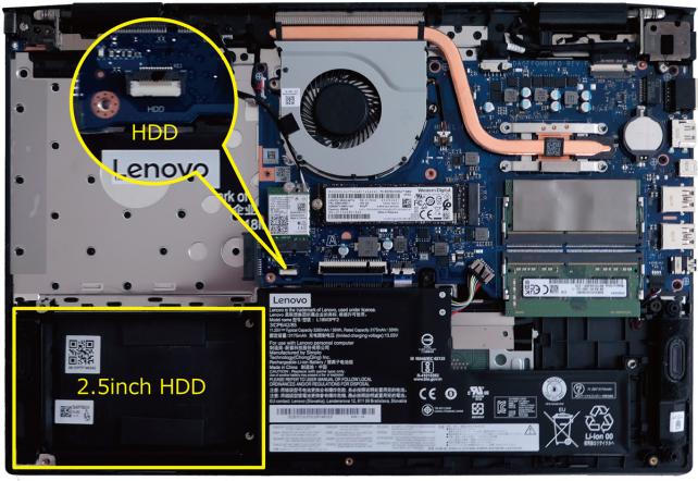 そこで、裏ふたを開けてみたところ、左下に、2.5インチSATA HDDを格納できるスペースがあることが判りました。