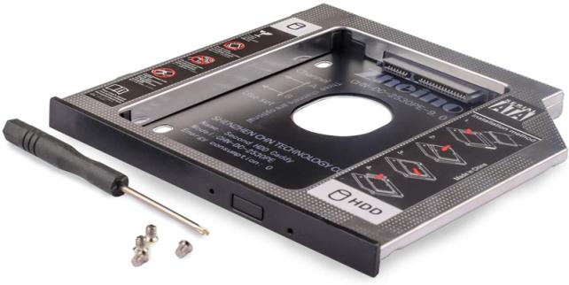 CD/DVD光学ドライブの利用頻度が少ないのであれば、使う時だけUSBで接続し、普段は、光学ドライブの代わりに、SATA SSDを搭載することができます。