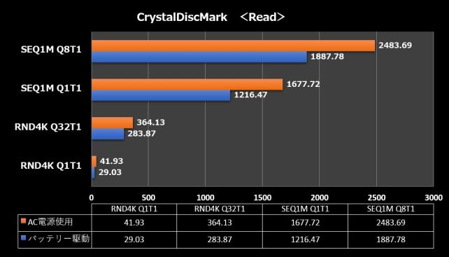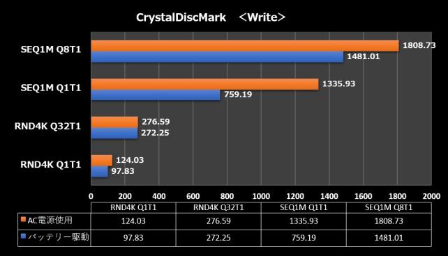 でも、バッテリー駆動の結果を見ると、ノートPCとしては結構な速さです。