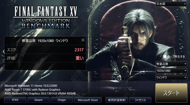 ファイナルファンタジーXV WINDOWS EDITION ベンチマーク: