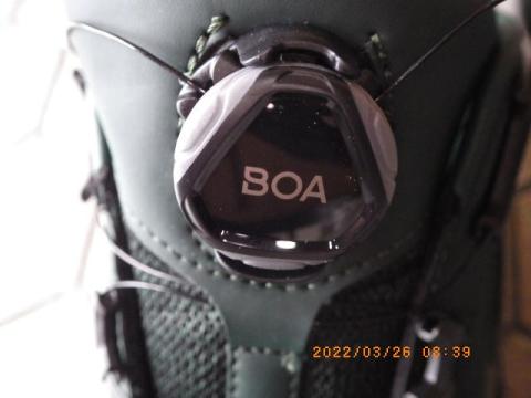 ここを回して締め BOAとロゴの入った部位を引っ張ると