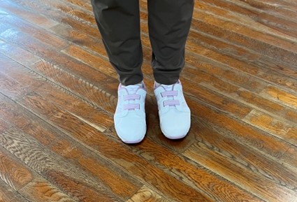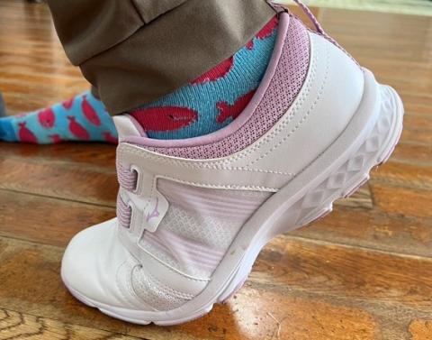 利用者さんの目線に合わせてしゃがんだりすることも多いですが、つま先を曲げやすいように切れ込みが入ったソールになっているところはいいですね。