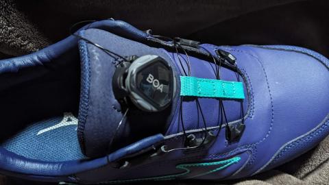 靴の着脱のためベロ(タン)部分の解放/締結にBOAシステムを採用。
