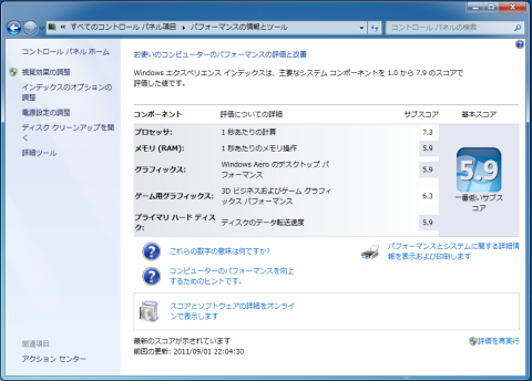 以上で4Gx2+SSDの構成が決定(グラフィックス5.9を上げたいけど)